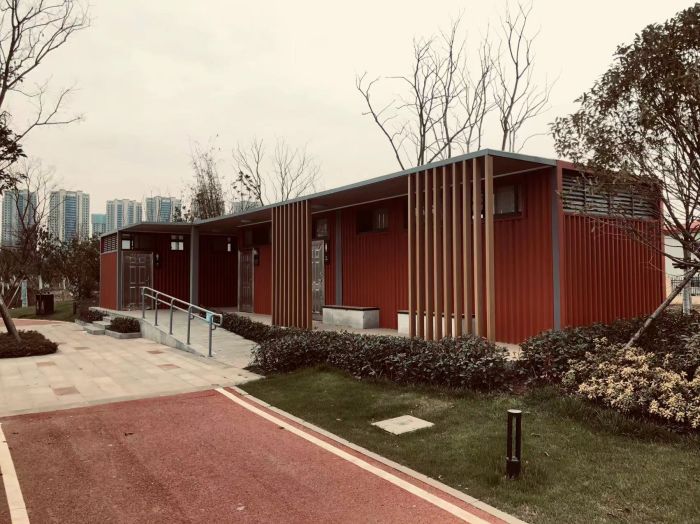 拼裝廁所;在廠里做好各個廁所部件,再到現(xiàn)場組裝在一齊,適合不易運(yùn)輸?shù)拇笮蛶_@座箱式廁所,女廁5個蹲位內(nèi)配工具間,男廁2個蹲位+2小便斗,第三衛(wèi)生間由殘疾馬桶、助力洗手盆和兒童馬桶、兒童洗手盆外加?jì)雰号_等設(shè)施。廁所前后有窗,通風(fēng)采光,前部走廊裝有屋檐,防雨防曬。此廁所位于公路綠道邊,整體大氣,功能齊全,造型美觀,是一道難得的靚麗景觀!