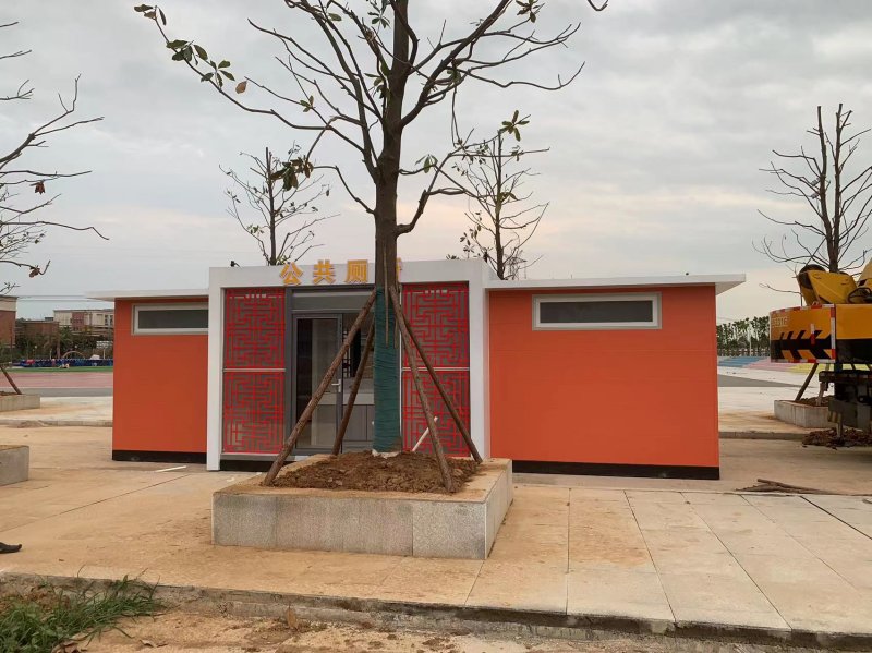 拼裝廁所;在廠里做好各個廁所部件,再到現(xiàn)場組裝在一齊,適合不易運(yùn)輸?shù)拇笮蛶_@座箱式廁所,女廁5個蹲位內(nèi)配工具間,男廁2個蹲位+2小便斗,第三衛(wèi)生間由殘疾馬桶、助力洗手盆和兒童馬桶、兒童洗手盆外加?jì)雰号_等設(shè)施。廁所前后有窗,通風(fēng)采光,前部走廊裝有屋檐,防雨防曬。此廁所位于公路綠道邊,整體大氣,功能齊全,造型美觀,是一道難得的靚麗景觀!